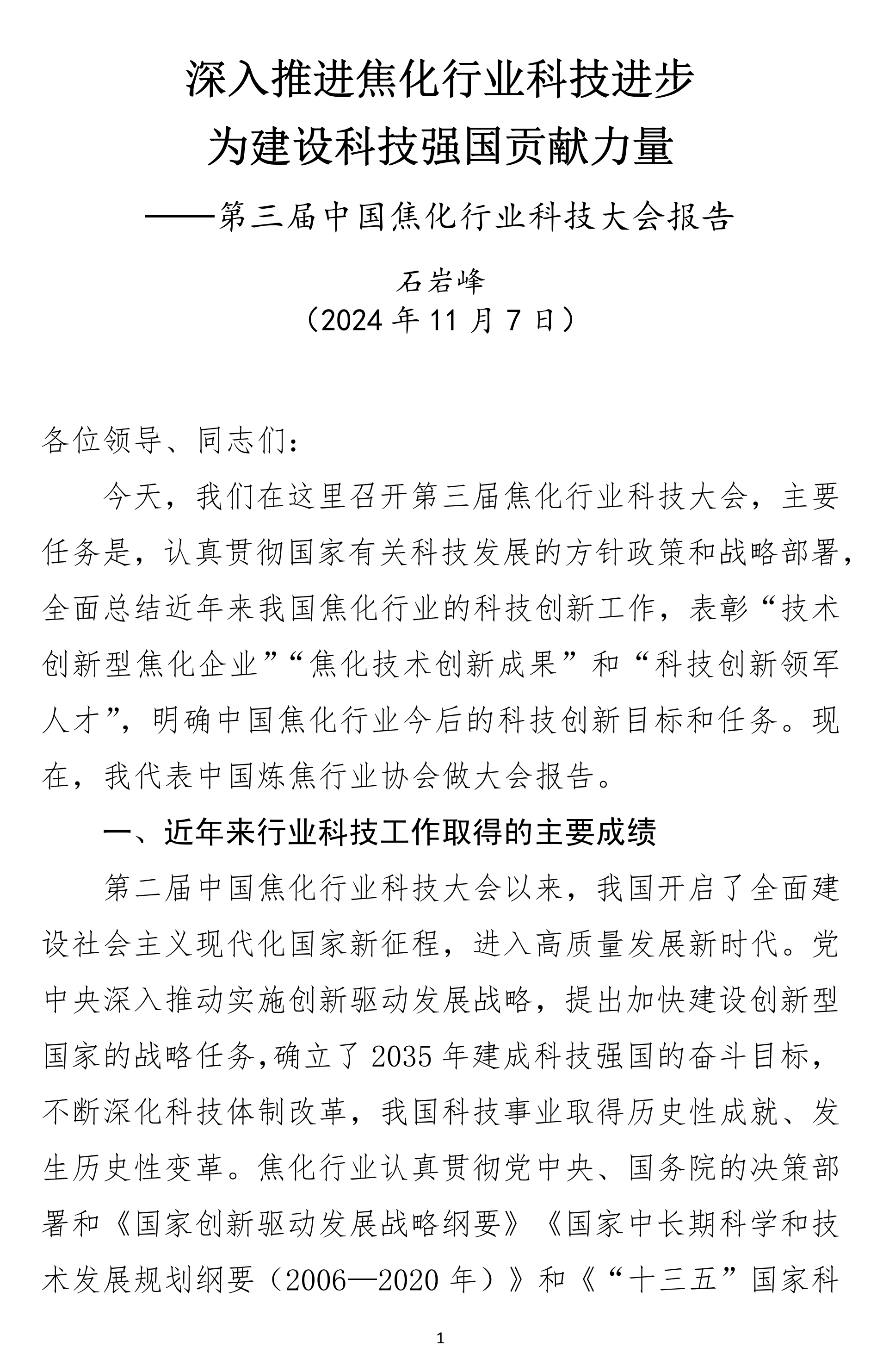 第三届中国焦化行业科技大会报告-中国炼焦行业协会-石岩峰